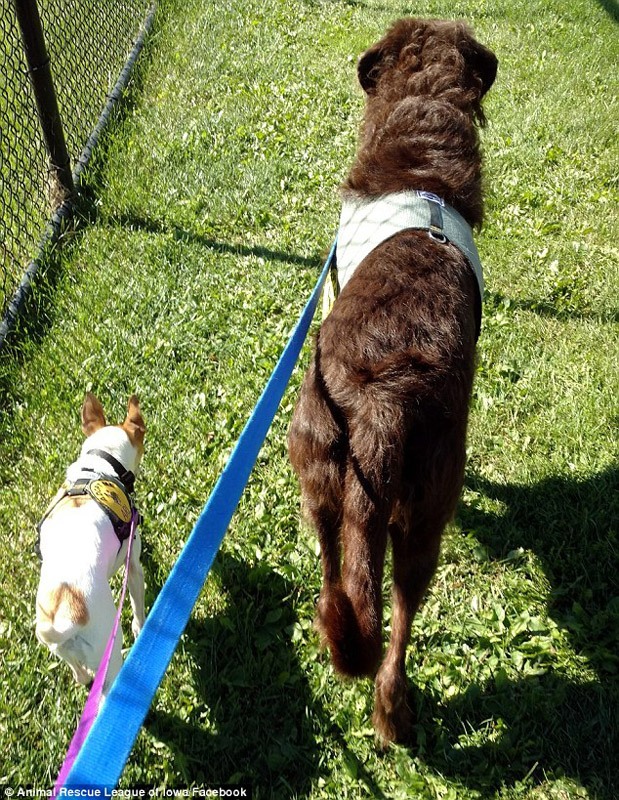 美国被救助大狗小狗形影不离 温暖人心(组图)