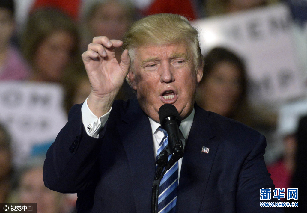 当地时间2016年10月14日,美国夏洛特,共和党总统候选人特朗普举行竞选集会,众多女性支持者为其站台。