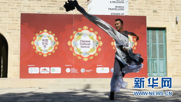 饶子龙老师表演自己创编的《水墨飞天》。新华网发