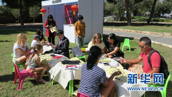 王振先院长带领孔院全体教师指导汉语爱好者练习书法。新华网发