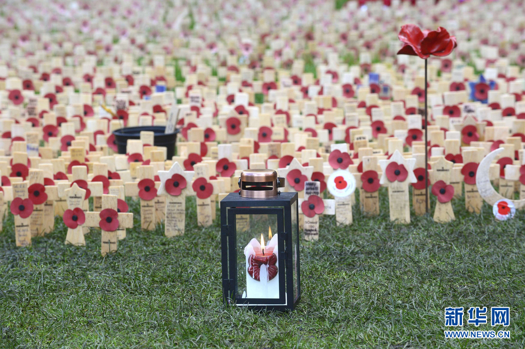 当地时间2016年10月17日,英国卡纳芬,数千陶瓷罂粟花亮相卡纳芬城堡,纪念一战阵亡将士。图片来源:视觉中国。