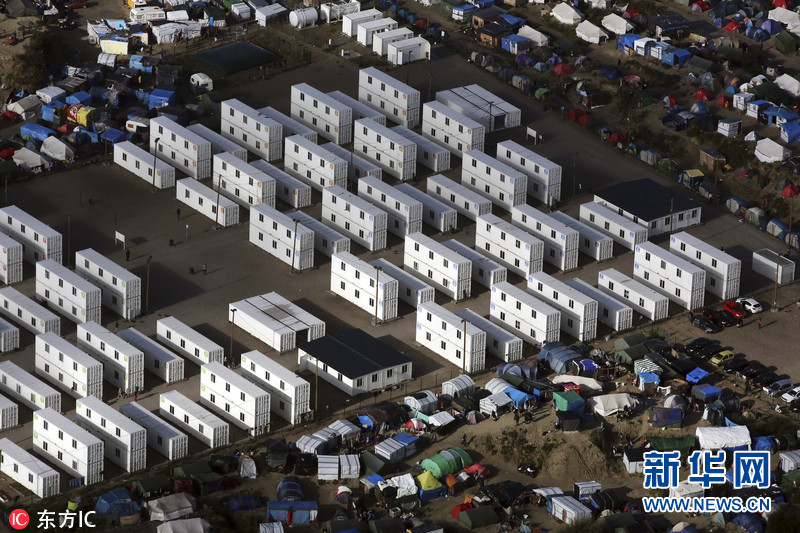 航拍法国临时难民营地 密密麻麻星罗棋布