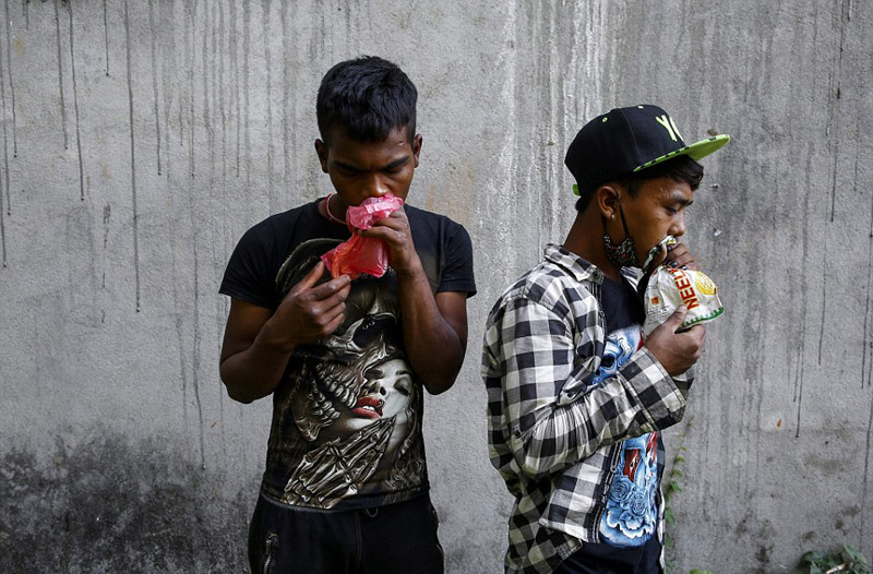 尼泊尔流浪儿童“嗅胶止饥” 令人心疼(组图)