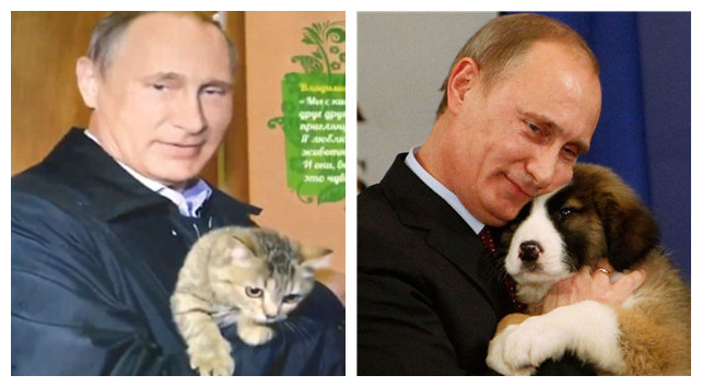在2016年日历中,曾包括普京怀抱小狗的照片,今年他怀里的动物换成了小猫。(网页截图)