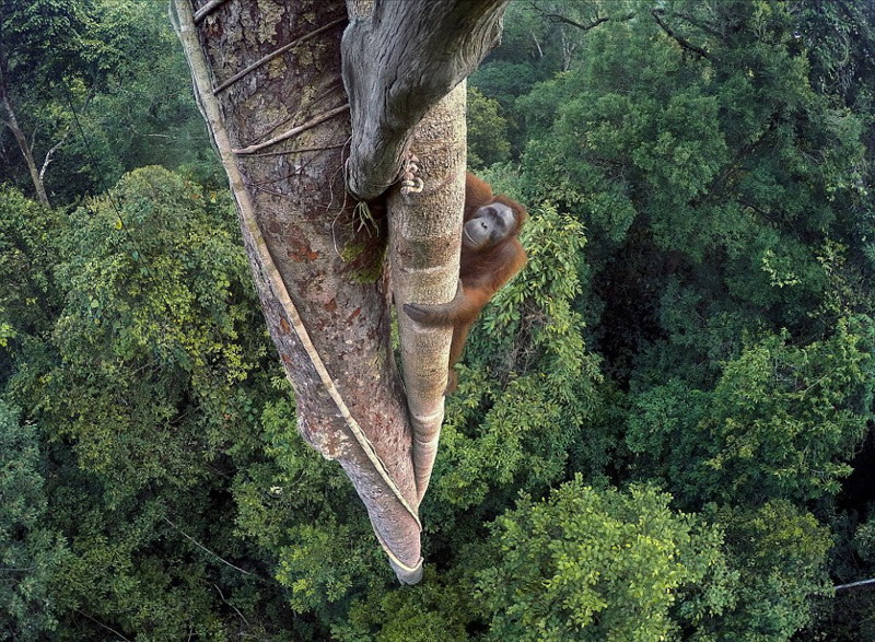 英国自然历史博物馆评选出2016年年度最佳野生动物摄影师,美国摄影师提姆 拉曼从来自95个国家的5万幅作品中脱颖而出,他拍摄的照片描绘一只坐在一旁的濒危猩猩。