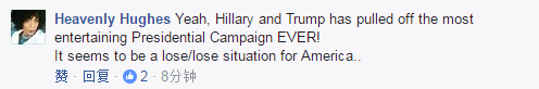 “希拉里和特朗普开创了美国历史上最搞笑的竞选,对于美国来说是双输的局面。”