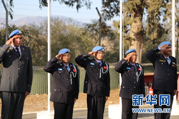 三名准备接受授勋的中国驻塞浦路斯维和警察。新华网发