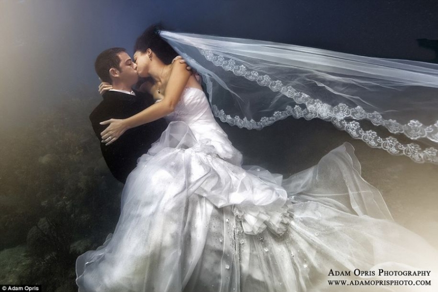 有人说,在结婚典礼的当天如果下雨的话,对于新人来说是预示着好运的到来,那么如果新郎新娘在水下结婚是不是会预示更大的好运即将到来呢?摄影师Adam Opris用自己过硬的专业素质,以及别出心裁的创意告诉大众,拍摄一组水下婚纱照绝对能让新人永生难忘。