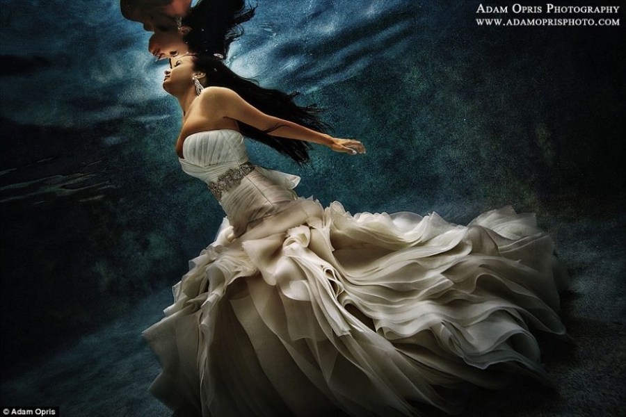 永生难忘!摄影师拍摄唯美水下婚纱照(组图)