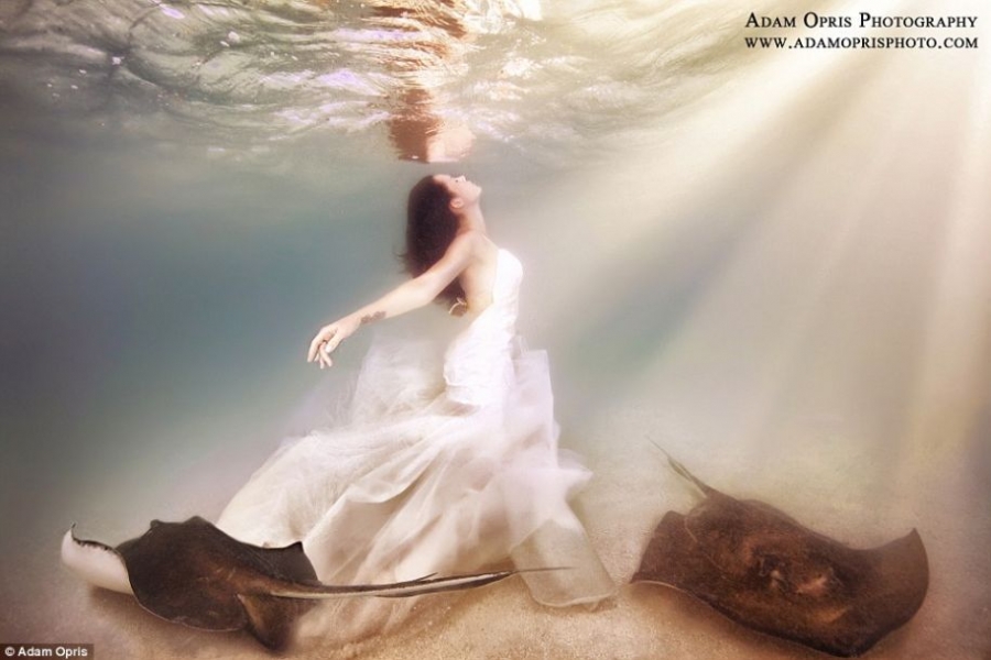 永生难忘!摄影师拍摄唯美水下婚纱照(组图)