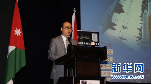 10月24日,在约旦安曼,中国驻约旦大使馆临时代办张海涛在中国电影周开幕式上致辞。新华网记者程春香摄
