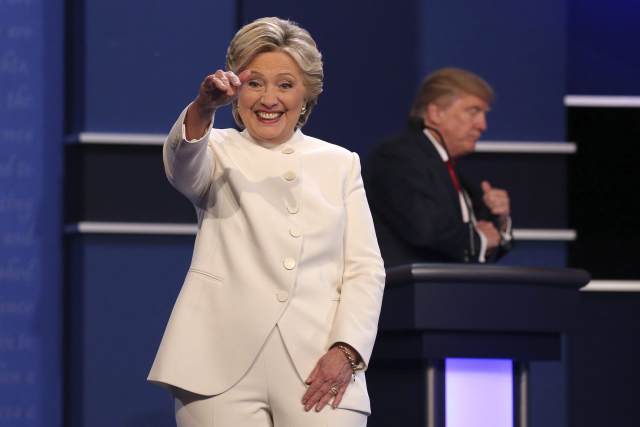 10月19日,希拉里和特朗普在第三轮电视辩论中。(新华/欧新)