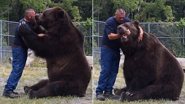 真正的熊抱!美国一棕熊热情拥抱人类朋友