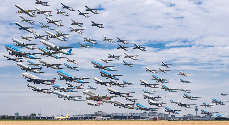 据英国《每日邮报》10月26日报道,近日,英国政府批准伦敦希思罗机场扩建计划,决定修建第三条飞机跑道。与此同时,美国摄影师麦克·凯利(Mike Kelley)发布Airportraits系列摄影作品,展示希思罗机场百架飞机“同时起飞”和“同时返航”的壮景,令人十分震惊。