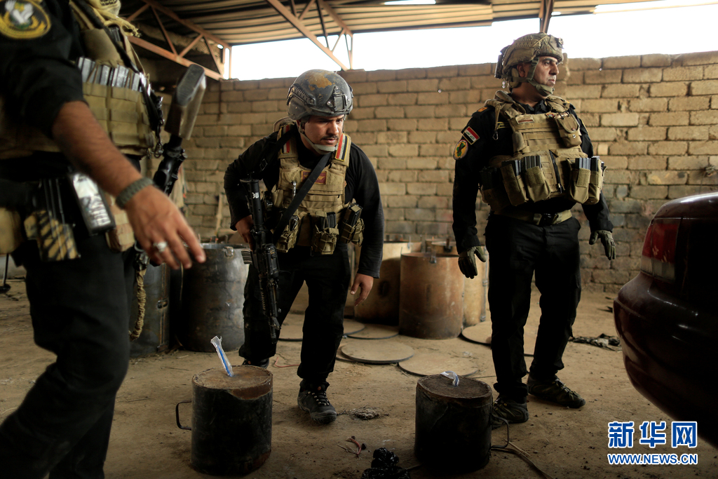 伊拉克士兵在摩苏尔东部查获“伊斯兰国”自制炸弹工厂(组图)