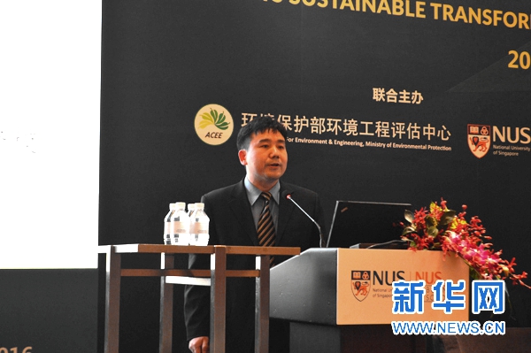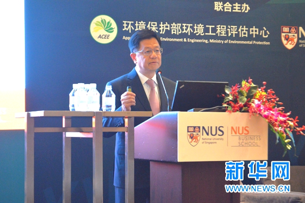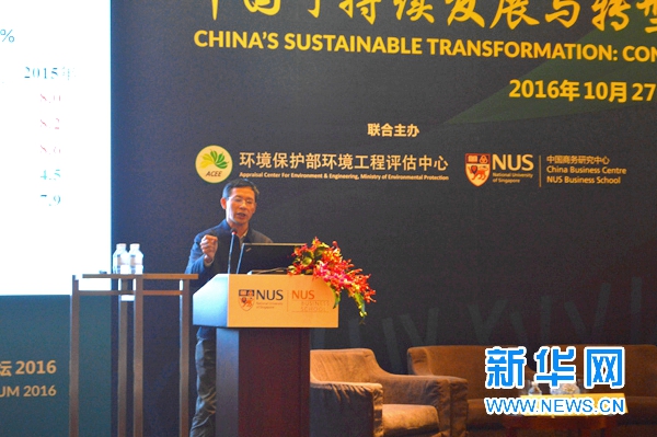 新加坡国立大学商学院院长杨贤以科斯定理为理论依据,从政府、企业和社会管理三个角度谈环保,他认为环保需要好的政府管理。新华网发 解婷婷 摄