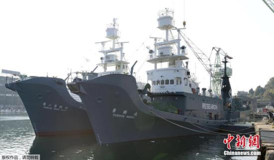 资料图:当地时间2015年12月1日,日本下关港市,日本科研捕鲸船队从山口县下关港出发前往南极海域。