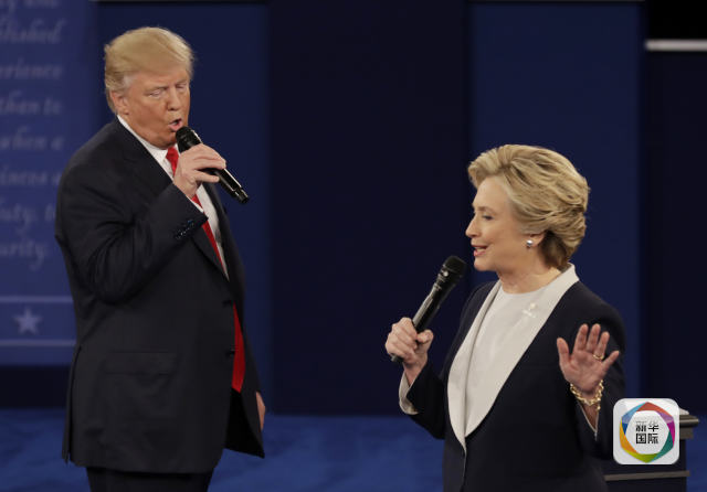 10月9日,美国两党总统候选人特朗普和希拉里进行两人之间第二场电视辩论。(新华社发)