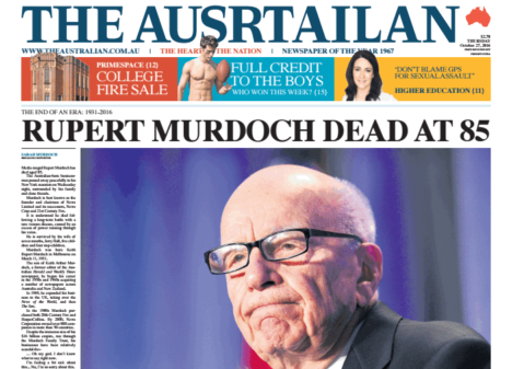 澳传媒大亨默多克逝世?澳报刊遭大学生恶搞