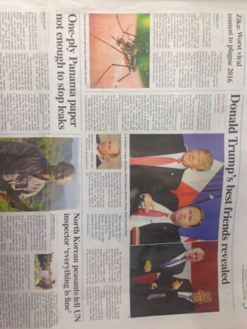 在模仿《澳洲人报》的这一期的16页中,既有下流手势形状的拼字游戏,也有调侃“英国脱欧”“美国大选”等国际时政热点的文章。