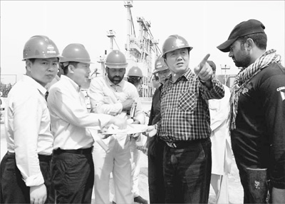 图二:李令选(右二)在项目现场指导中巴双方安排施工生产。中铁二十局供图