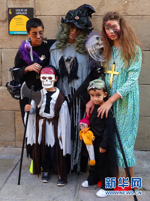 10月30日,西班牙巴塞罗那,图为万圣节活动现场。新华网记者周喆 摄