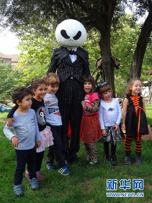 10月30日,西班牙巴塞罗那,图为万圣节活动现场。新华网记者周喆 摄