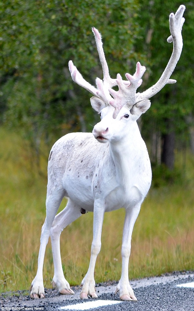 瑞典森林出现罕见纯白驯鹿 如童话精灵(组图)