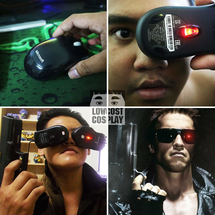 Saengchart为了完成创意的低成本角色扮演,运用的全部都是生活中的常见物品,不仅看起来独特还非常的便宜,这些道具几乎在每个人家中都可以找到。图为模仿《终结者》。