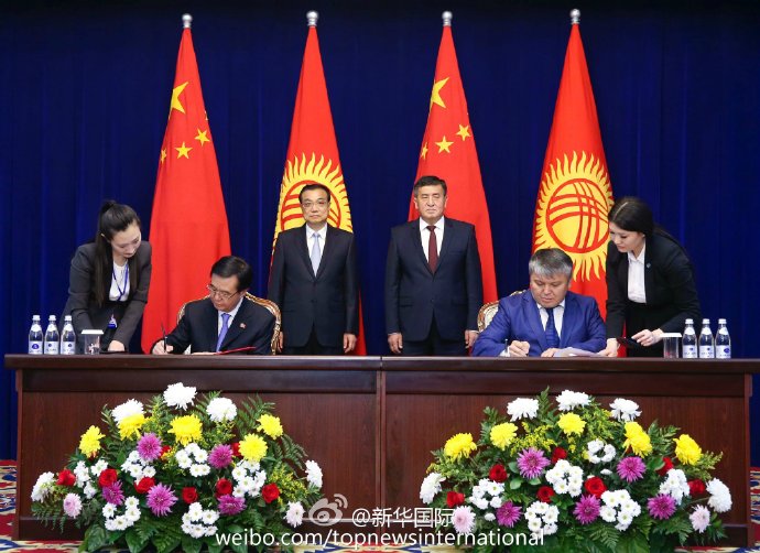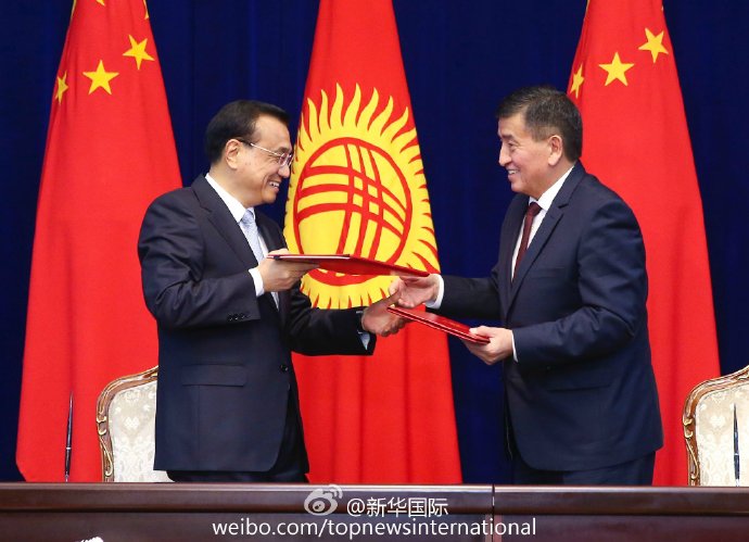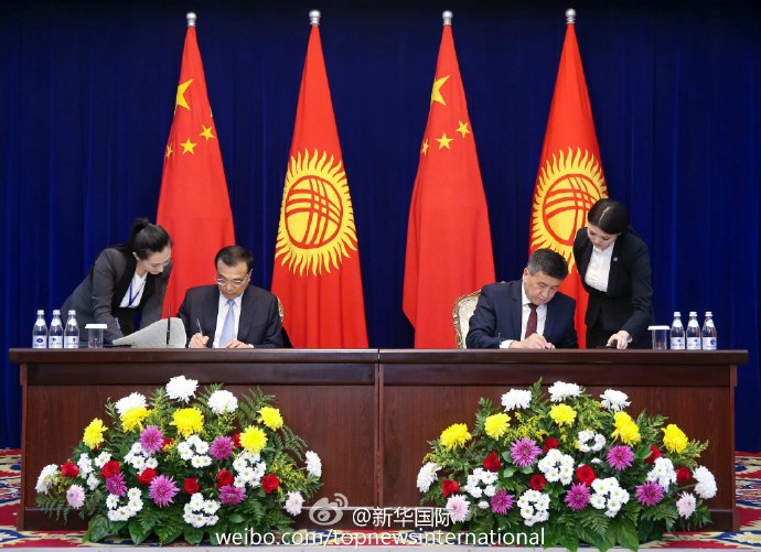 新华网北京11月3日电 正在吉尔吉斯斯坦访问的李克强总理2日下午与吉总理热恩别科夫共同签署发表中吉两国政府联合公报,并见证了双方经济技术、产能、交通、农业、知识产权等领域多份合作文件的签署。(据“新华国际”微博报道)