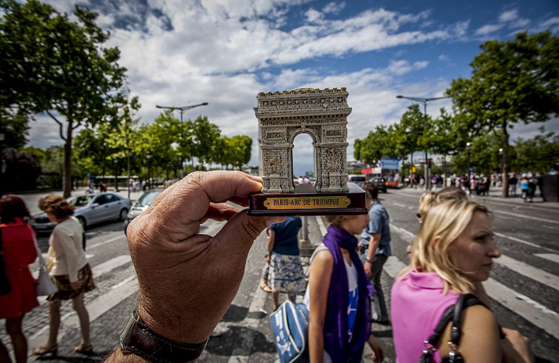 据英国《每日邮报》11月2日报道,英国摄影师迈克尔 休斯(Michael Hughes)自1999年开始环游世界,在途中用买到的便宜纪念品与地标性建筑重合拍摄,留下了许多有趣的照片。