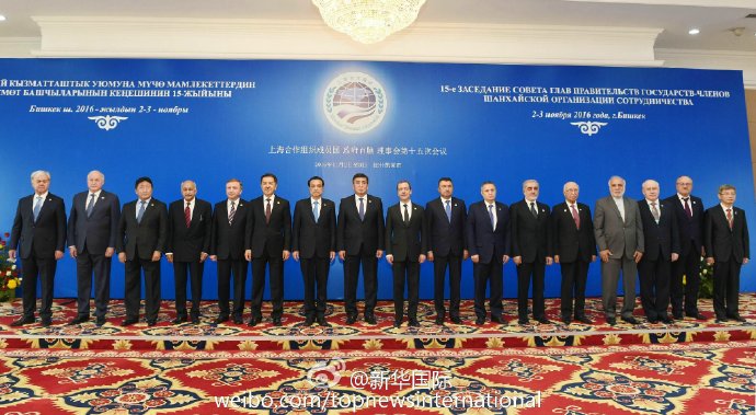 新华网北京11月3日电 当地时间3日下午,李克强总理在吉尔吉斯斯坦首都比什凯克与出席上海合作组织成员国政府首脑(总理)理事会第十五次会议的成员国和观察员国领导人及国际组织负责人集体合影,留下一张比什凯克“全家福”。(据“新华国际”微博报道)