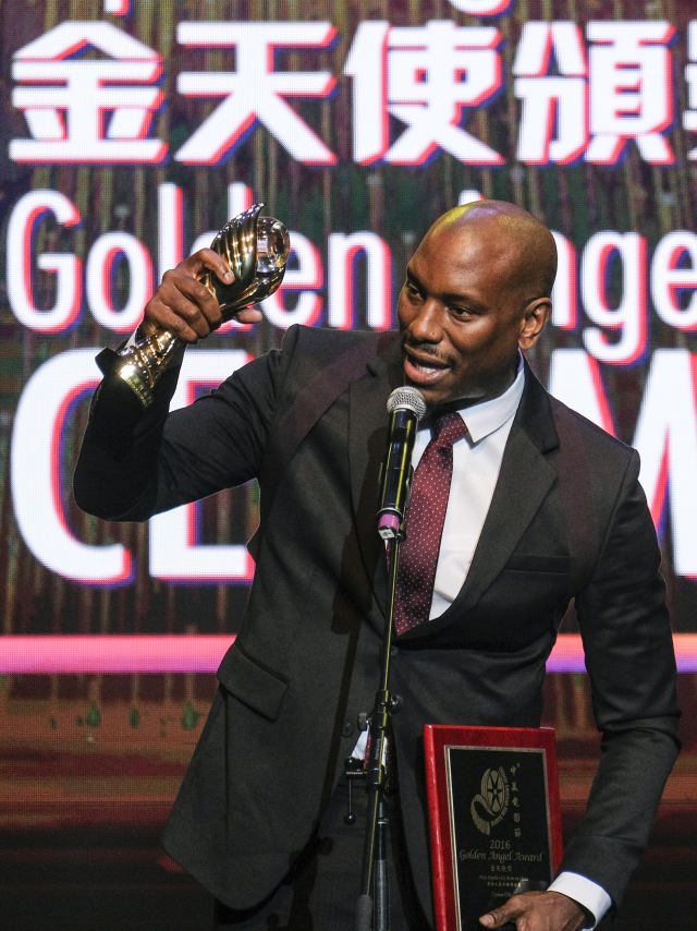 2016年11月2日,美国《速度与激情》系列影片中的男演员泰瑞斯·吉布森获颁中国最佳人气外国男演员奖。(新华社记者赵汉荣摄)