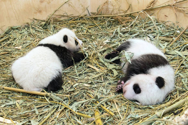 奥地利大熊猫龙凤胎萌宝得名“福伴”“福凤”