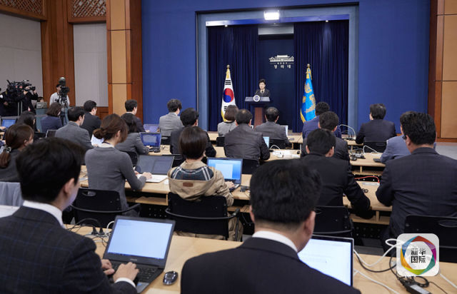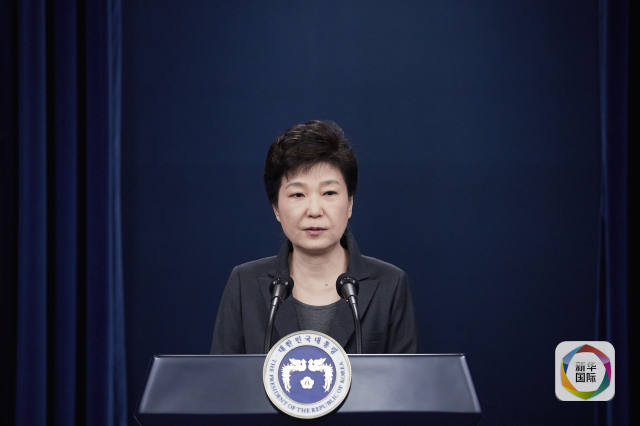 11月4日,在位于韩国首尔的总统府青瓦台,韩国总统朴槿惠发表对国民讲话。 新华社发(青瓦台总统府提供)