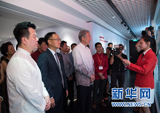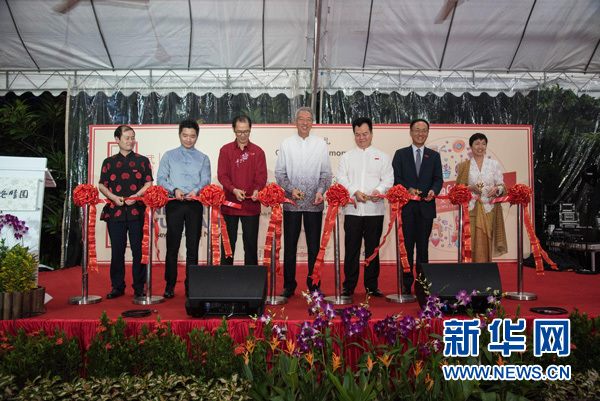 11月5日,新加坡副总理兼国家安全统筹部长张志贤(左四)、中国驻新加坡大使陈晓东(右二)、推广华语理事会主席萧作鸣(左三)、晚晴园孙中山南洋纪念馆董事白南泉(右三)、武汉辛亥革命武昌起义纪念馆馆长朱祥德(左一)等为“天涯共此时:武昌首义与南洋回响”特展暨“2016文化飨宴艺晚晴”文化节开幕剪彩。新华网发 王应耀 摄
