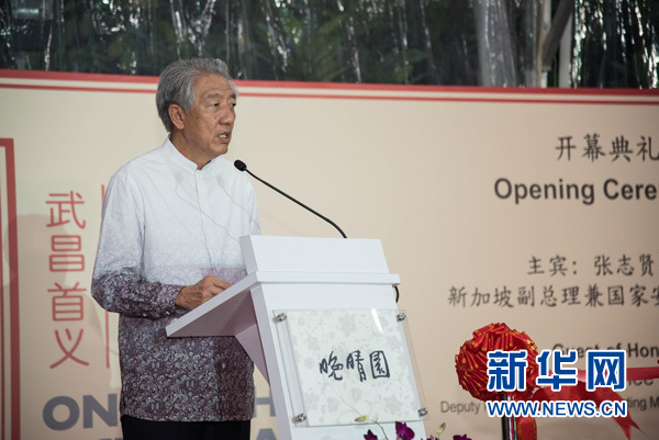 新华网新加坡11月6日电(毛雅珊)“天涯共此时:武昌首义与南洋回响”特展暨“2016文化飨宴艺晚晴”文化节5日晚在晚晴园—孙中山南洋纪念馆拉开帷幕,新加坡副总理兼国家安全统筹部长张志贤、中国驻新加坡大使陈晓东为开幕活动剪彩。开幕式作为纪念孙中山诞辰150周年系列活动之一,由晚晴园—孙中山南洋纪念馆、新加坡国家文物局、新加坡文化、社区及青年部、新加坡推广华语理事会以及武汉辛亥革命武昌起义纪念馆共同主办。