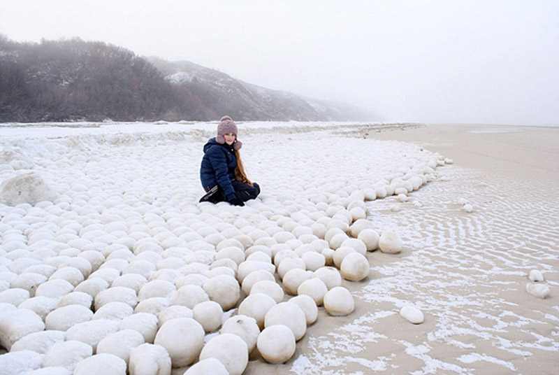 俄罗斯海岸现神秘雪球堆 规模巨大(组图)