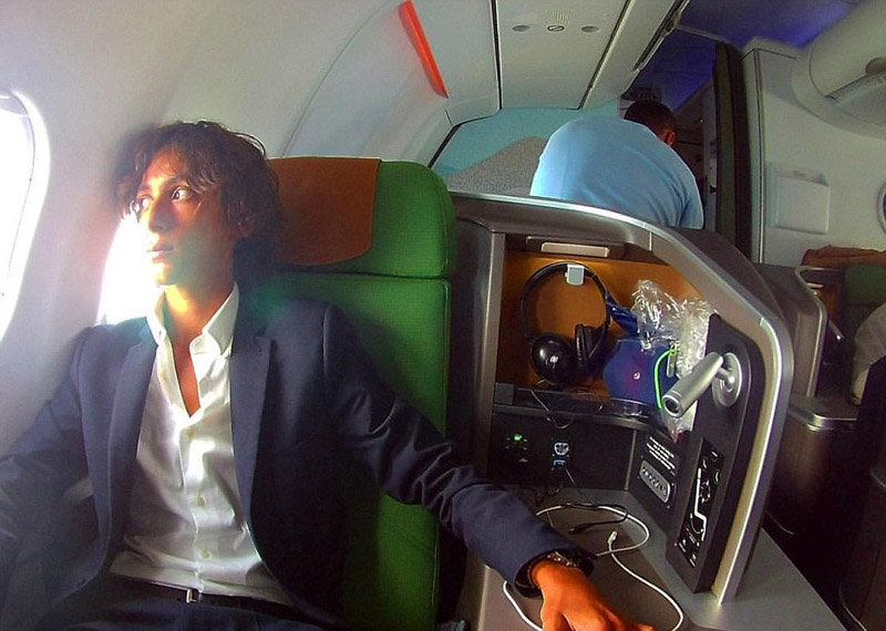 每当马克拉斯完成测试后,机上的高管以及工作人员都会举行庆祝仪式,他们喝着香槟、吃着美食,在机舱内“畅游”。幸运的马克拉斯经常在Instagram 上分享自己工作时的照片,并给网友们带来一手消息,告诉他们飞机上的哪个座位坐起来最舒适。