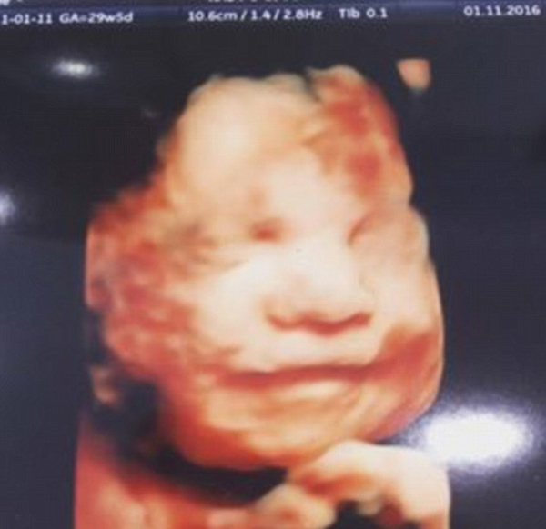 据英国《每日邮报》11月3日报道,27岁的英国孕妇艾梅·费根(Aimee Fagan)(已育有两个女儿)2日在利物浦的超声检查中心接受4D孕检,当她3岁的小女儿对她腹中的胎儿说话时,胎儿竟露出了微笑。
