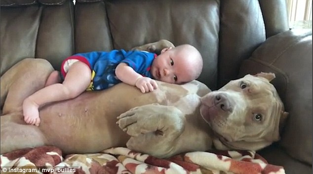暖心!美国恶霸犬给予小宝宝温暖拥抱(组图)