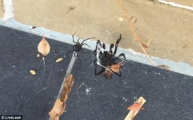 在漏斗网蜘蛛不移动之后,“黑寡妇”似乎对它失去了兴趣,爬向了安全地带通风孔。与此同时,漏斗网蜘蛛开始晃动身体,因为它仍然处于“黑寡妇”的蜘蛛网中。显然,在这一场斗争中“黑寡妇”占据了上风。