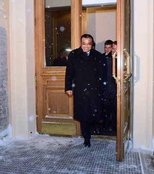 “路上很滑,您慢点开车!”梅德韦杰夫大声提醒李总理。李克强用俄文回应“谢谢”。在梅德韦杰夫的目送下,李克强的车队驶离康斯坦丁宫。两位总理在这里参加了若干场会谈、活动,超过六个多小时。(新京报特约记者 储思琮)