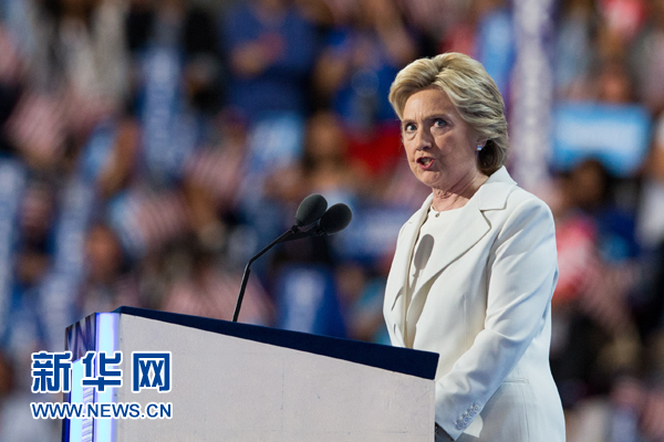 据美国媒体报道,美国民主党总统候选人希拉里·克林顿11月9日承认在总统选举中失败。这是希拉里在美国宾夕法尼亚州费城举行的民主党全国代表大会上发表演讲的资料照片(2016年7月28日摄)。 新华社记者李木子摄