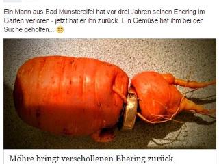一位德国老人几年前丢了结婚戒指,怎么找也找不到,三年后发现戒指竟然“长”在了一根胡萝卜上。