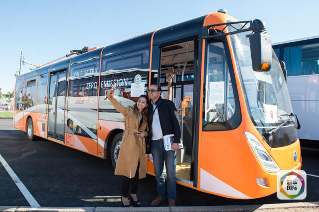 车辆停稳,乘客纷纷下车。阿卜杜拉提快步向前,掏出手机,与妻子在车前摆好姿势,微笑,自拍。身后橙色车身上,“百分百电动”、“零排放”字样,出现在镜头里。