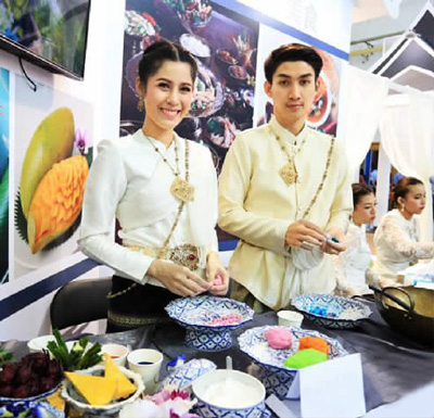 泰国参展者在2016中国—东盟博览会旅游展上向观众展示传统美食。