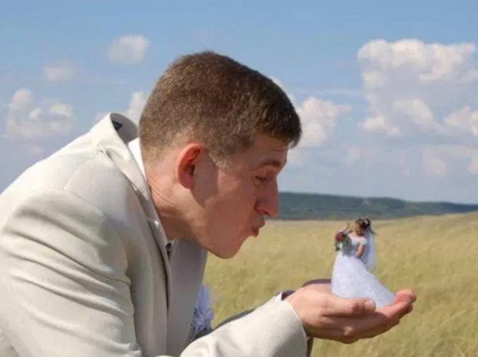俄滑稽婚纱照成主流 合成照片记录奇思妙想(组图)