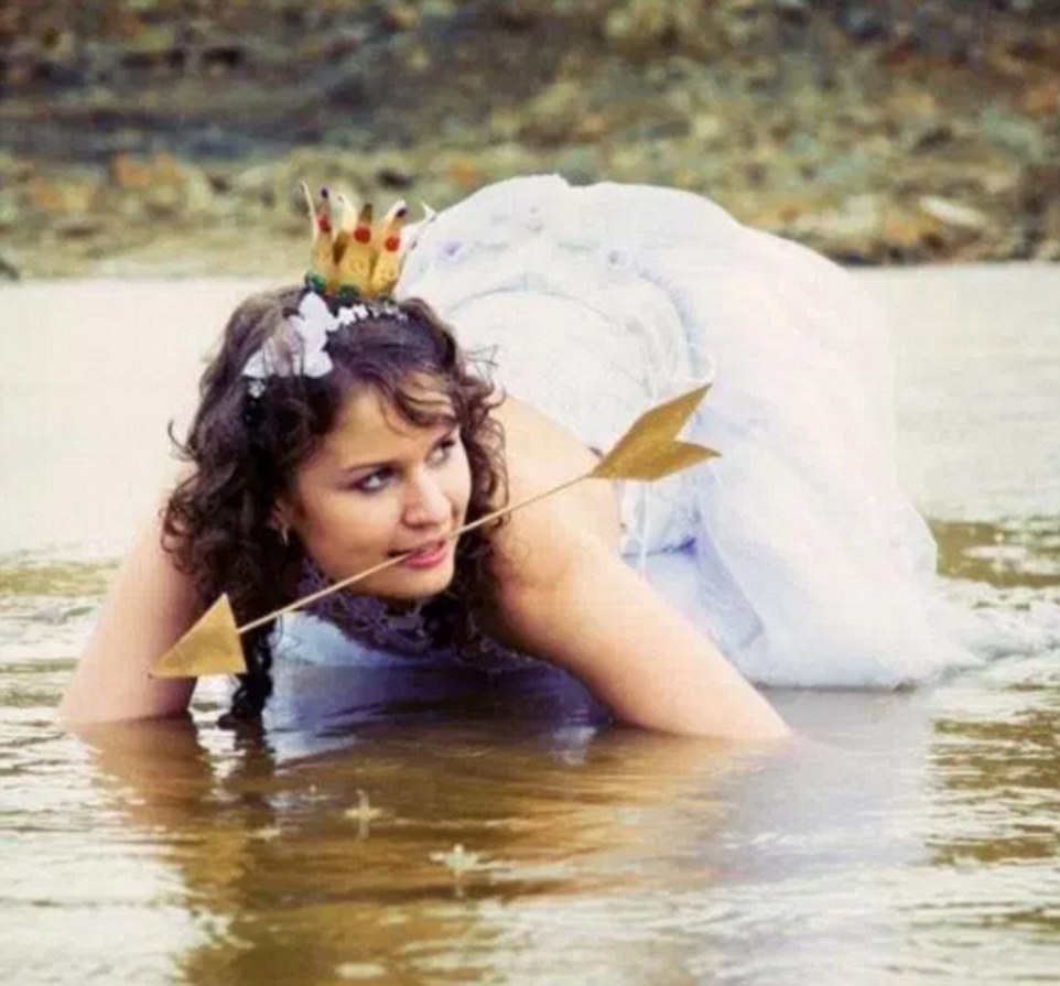 这些滑稽的照片反映了现在风靡全俄罗斯的拍照趋势:新人们用PS技术合成照片展现他们的奇思妙想。比如,一位新娘模仿了《饥饿游戏》,照片中,她头戴皇冠,匍匐过河,口里还咬着一支箭。过河后,她和丈夫一起在天鹅背上摆出了其他姿势。另一组奇怪的照片分别是巨人新郎把微型新娘放进自己的衣服口袋里,以及强壮的新郎将车里的妻子,连车带人一起高高举起。