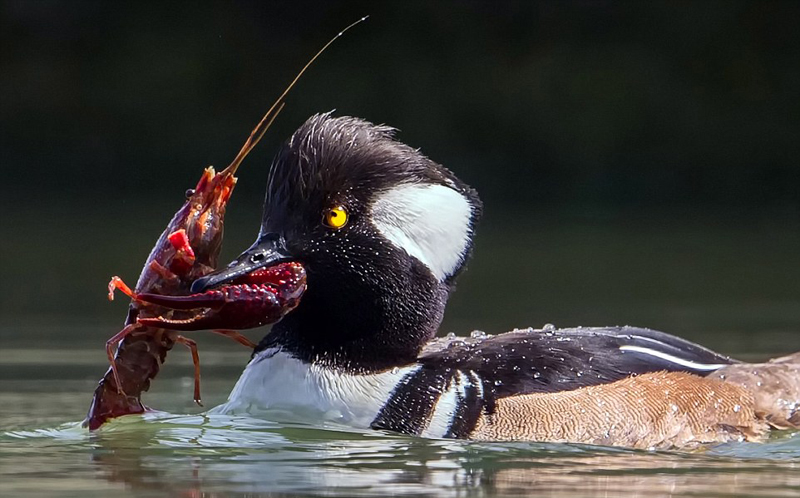 美国摄影师安德鲁·李(Andrew Lee)十分欣赏褐秋沙鸭的雄姿。在得知有数只褐秋沙鸭在加利福尼亚州富勒顿市一个大池塘中栖息时,他便即刻前往,并抓拍到“沙鸭大战小龙虾”的精彩画面。